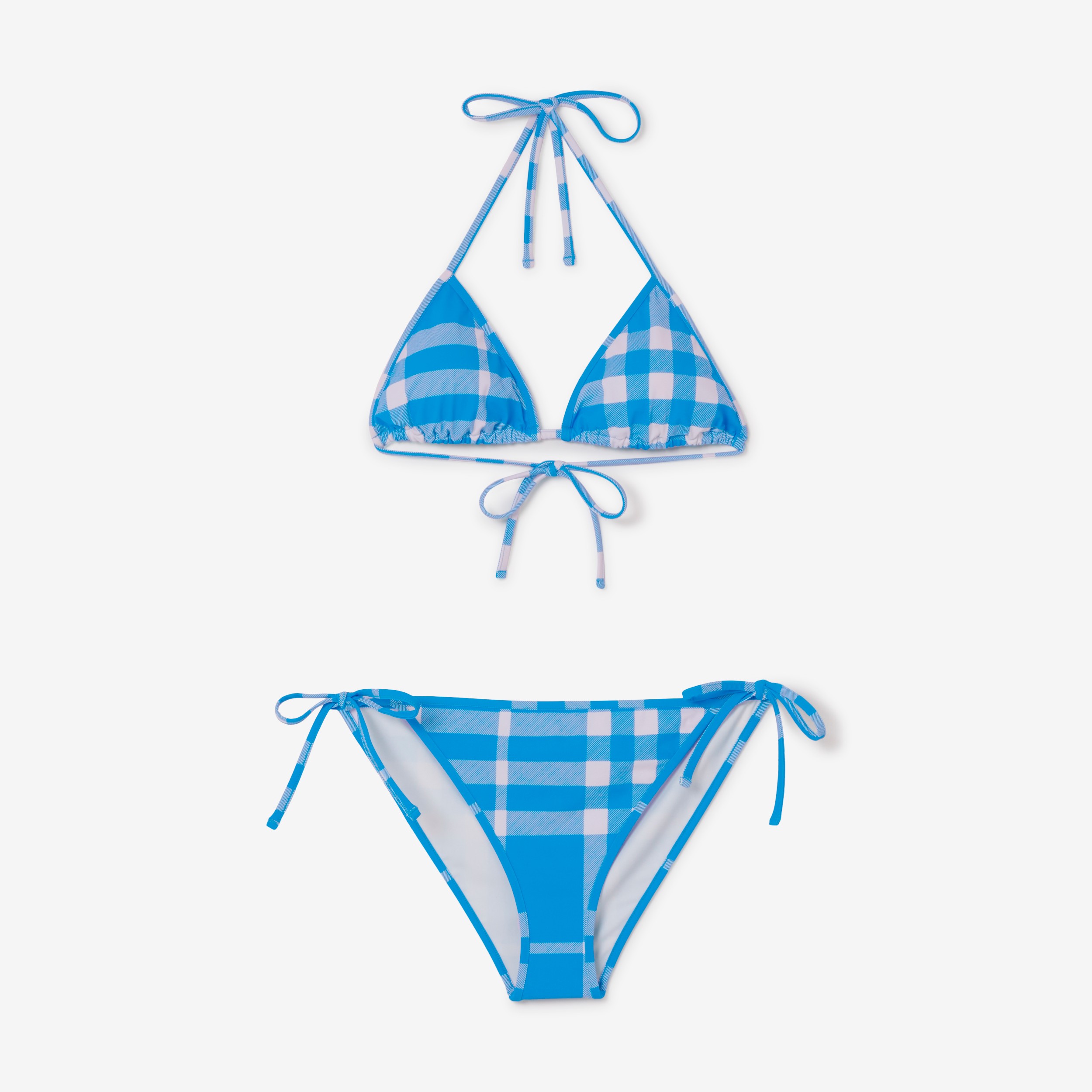 Check Stretch Nylon Triangle Bikini in Vivid Blue Women Burberry
